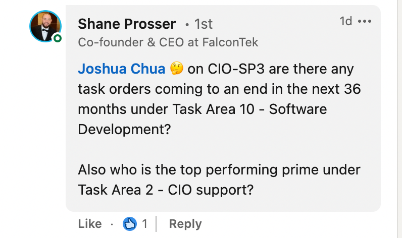 A sample of task orders expiring in 2023/2024, check out the CIO-SP3 Small Business page to see expiring task orders